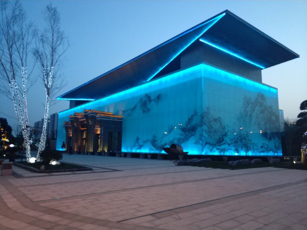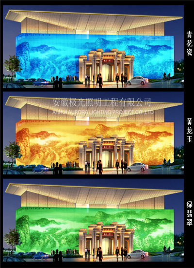 塘溪津門售樓部在夜景燈光設計上著重體現建築結構上所體現的徽派(pài)建築及現代建築的元素特征,在售(shòu)樓中心建築燈光的表現上,主要結合建築中大麵積(jī)使用的山(shān)水畫玻璃幕牆,設計上融入青花瓷、黃(huáng)龍玉,綠(lǜ)翡翠及徽派建築的設計元素,整體設計風格以(yǐ)清新淡雅為主,追求建築本身質感,同時追(zhuī)求靜中有動,增加整個項目的靈動性、觀(guān)賞性。