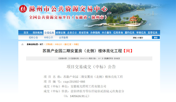 安(ān)徽極光照明得到中標通知